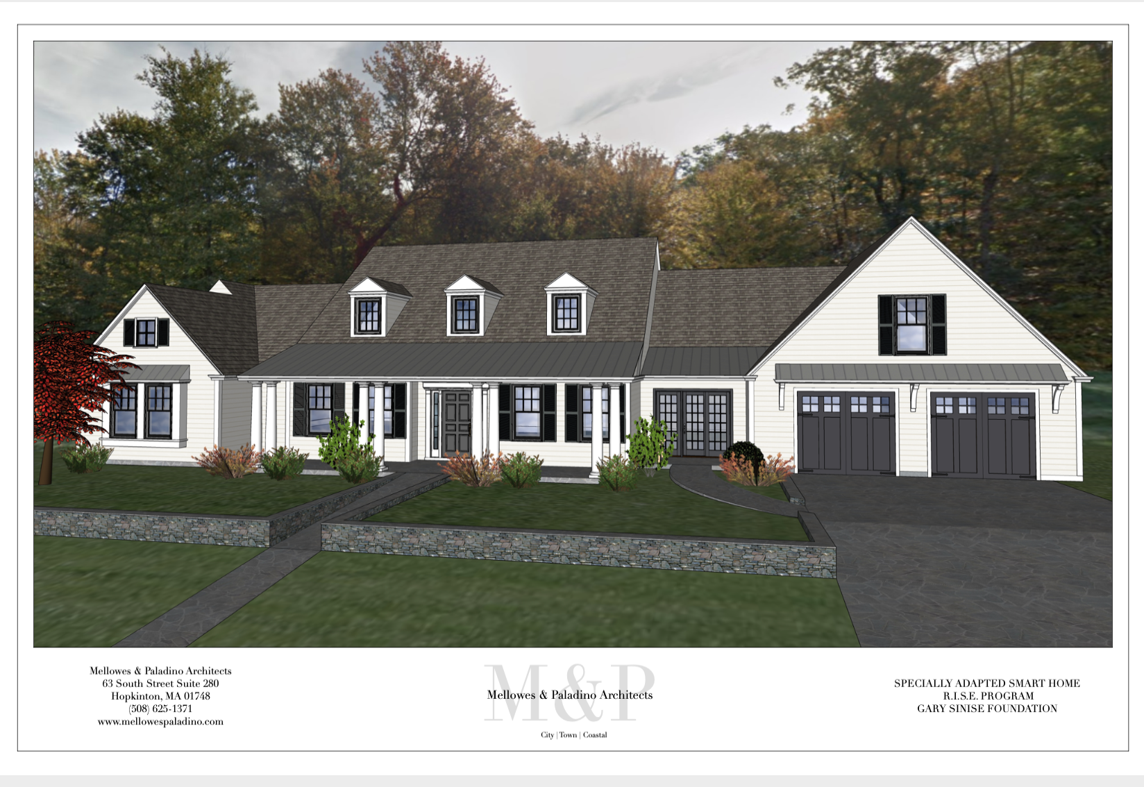 Mellowes & Paladino Architects proudly participated in designing a specially adapted smart home for a disabled veteran through the Gary Sinise Foundation R.I.S.E. program. The house was built by E.W. Tarca in Hopkinton with the support of many local businesses. Watch the video of the family touring the house. Read more about it on the Boston Design Guide blog and in the Hopkinton Independent.